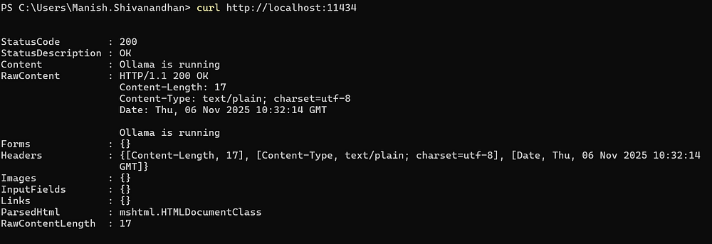 Ollama runs a local server on http://localhost:11434. This means you can send requests from your own scripts or applications.