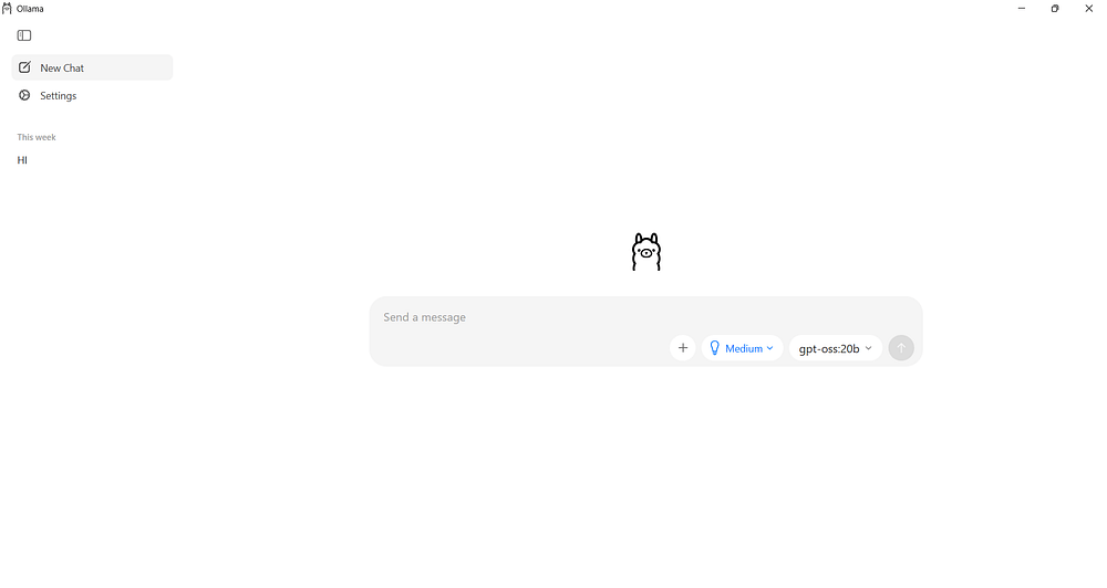 When the installation finishes, Ollama will run in the background as a local service. You can access it either through its graphical desktop interface or using the command line.